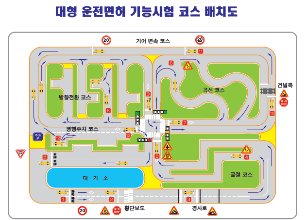 | 방향전환코스의 전·후진 | 5 | 확인선 미접촉, 지정시간 2분 초과시마다, 검지선 접촉시마다 |